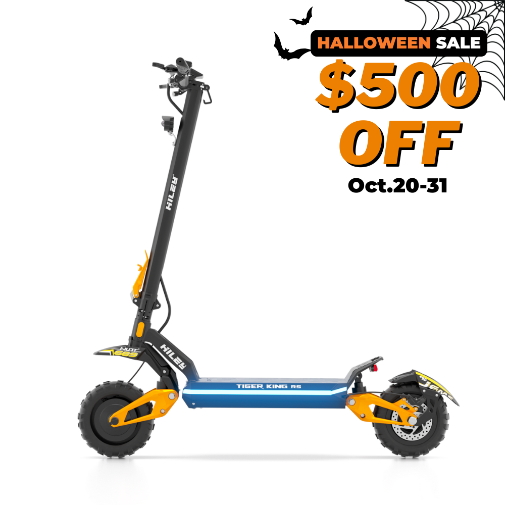 | Performance model — Hiley Tiger King RS | Up to 56–57 mph (≈ 96 km/h) | Dual 2×2300 W motors (≈ 5800 W peak). Far faster than commuter scooters, with greater cost, mass, and safety needs. |