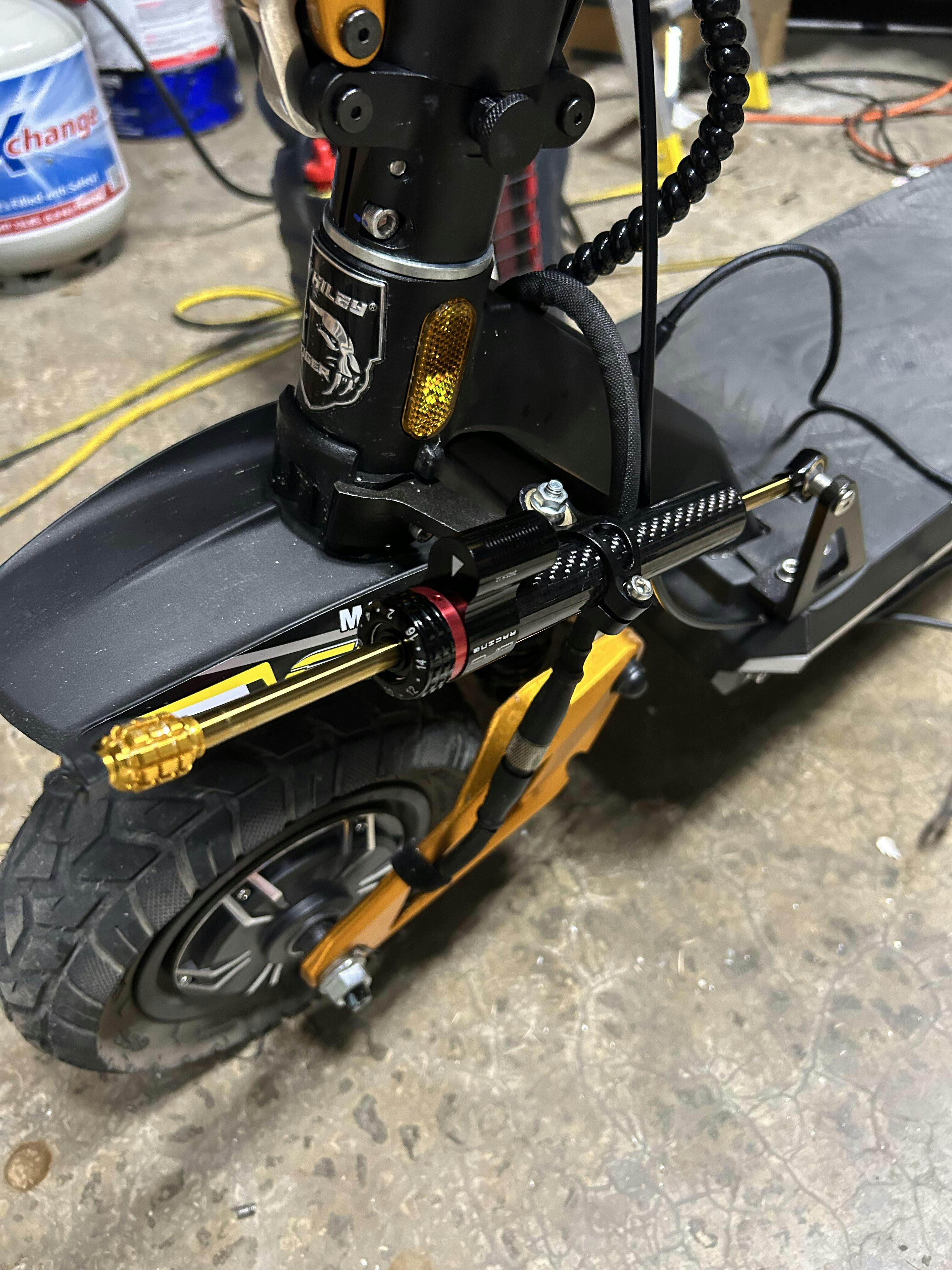 The steering damper is a must have for the Hiley Tiger Supra. The damper makes the ride experience smooth and safe. Must have a steering damper. five star.
