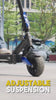Adjustable front and rear spring suspension matches your weight and terrain, keeping the scooter responsive, composed, and simple.