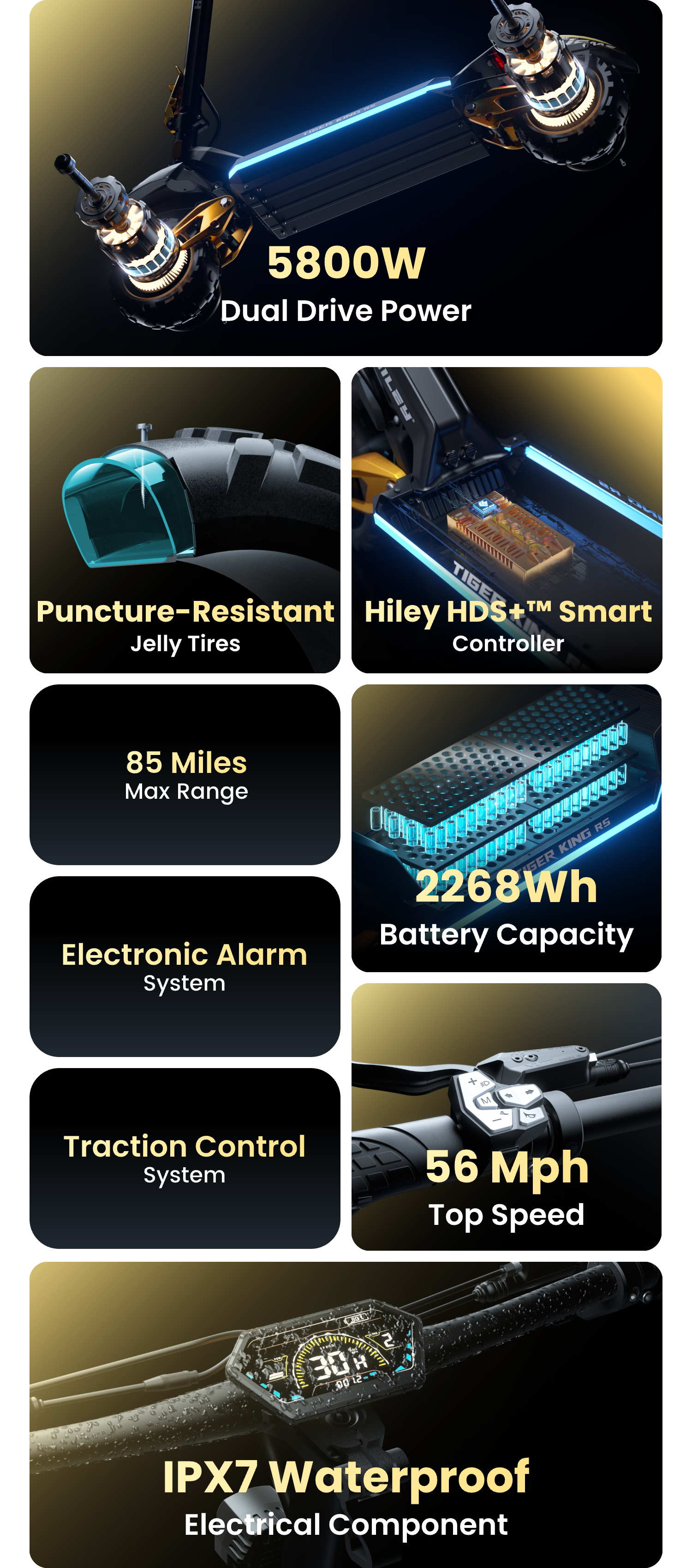 • 72V dual-drive, peak 5800W power