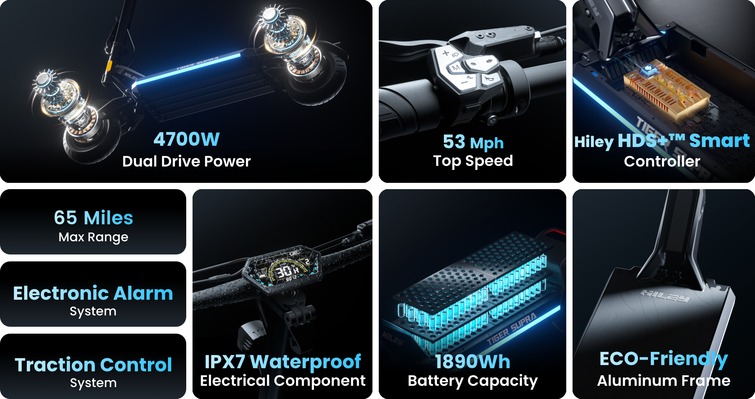 Controlled by the Hiley HDS+™ controller, which provides smooth throttle feel, excellent energy conversion, and intelligent current distribution under load.